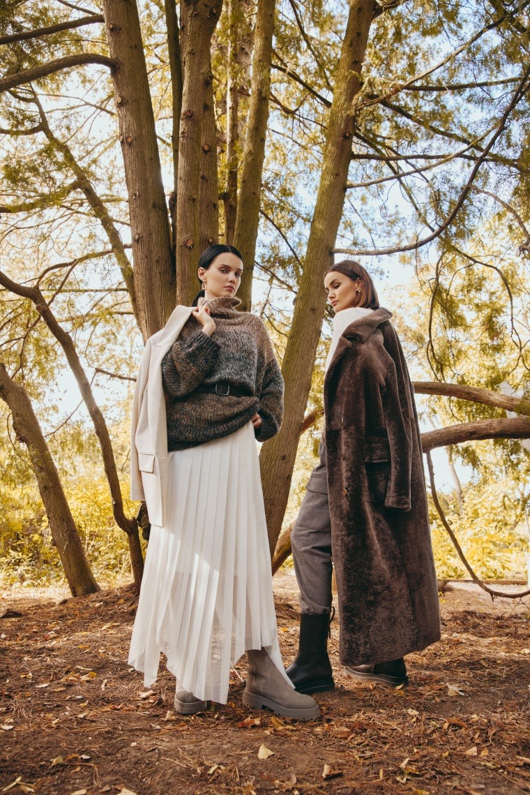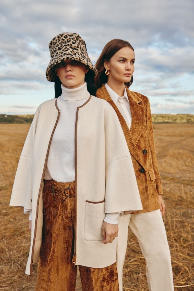 «Кашемир и Шелк» объединяет основные тренды сезона осень-зима 2023/2024: комфортная расслабленность и оversize. Брюки палаццо и костюмы из вельвета Peserico, объемный фактурный трикотаж с люрексом Fabiana Filippi и Cividini, пальто и куртки Agnona и Re Vera.