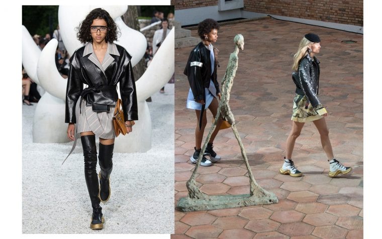 Новое поколение Archilight Жескьер представил на последнем показе Cruise 2019, который прошел в деревушке художников Сен-Поль-де-Ванс на юге Франции. Но на этот раз знакомую подошву мы увидели вовсе не на кроссовках… а на сапогах и ботинках! Модели вышагивали в черных ботфортах из эластичной кожи и лаконичных платьях, черно-белых ботинках и строгих классических брюках, бежевых ботильонах и блестящих платьицах. Новые Archilight вот-вот поступят в продажу, а значит, этой зимой поклонниц легкой современной «архитектуры» в мире наверняка прибавится!