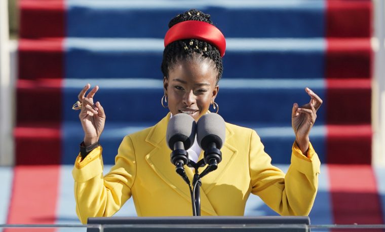 Специально для инаугурации Аманда написала стихотворение «Холм, на который мы взбираемся» («The Hill We Climb») о судьбах и надеждах Америки. Шестиминутное выступление юной поэтессы произвело фурор, и после этого дня она, как говорится, проснулась знаменитой.
