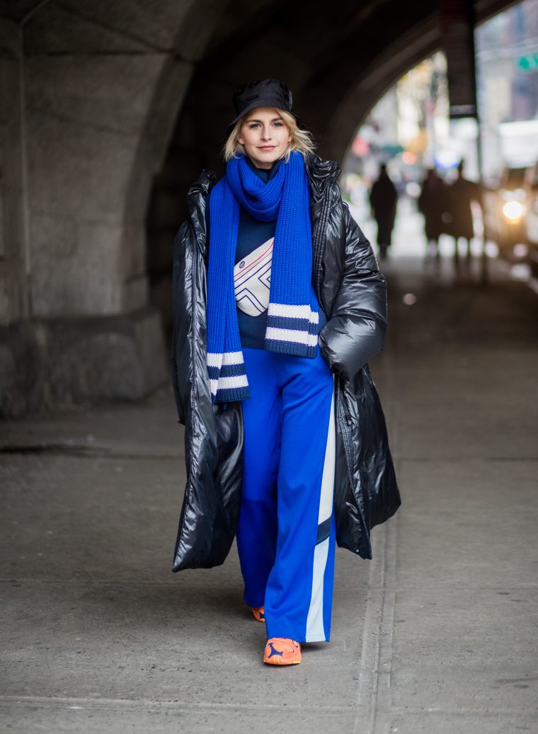 Пожалуй, это самая комфортная тенденция сезона: красиво, тепло и не вредит экологии. Носите такие длинные пуховики на манер пальто-халата, не застегивая молнию, а кутаясь в них, как в плед, дополняйте огромными шарфами или панамами. В этом сезоне утепляться модно!