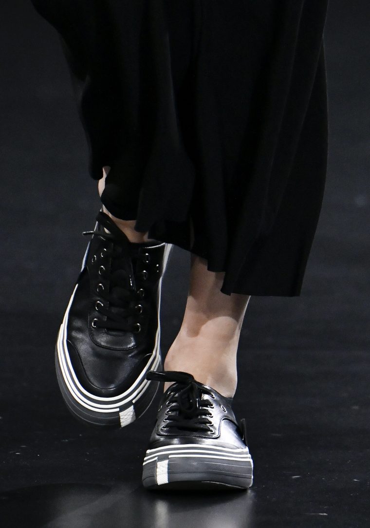 Жарким летом меняйте любимые кроссовки на более легкие кеды. Теннисная эстетика на пике моды. Классические белые или черные кеды, максимум – с контрастным мыском, были в коллекциях Celine, Yohji Yamomoto, Lacoste, но подойдут и ваши любимые «конверсы». А для тех, кто все-таки жаждет чего-то необычного, есть нашумевшая модель с острым мысом – Prada The Synthesis.