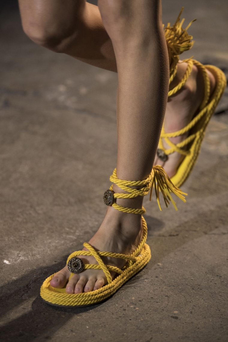 В моде морской стиль, а такие сандалии будто сплетены из судовых канатов. Alberta Ferretti, Michael Kors и Etro собирают сандалии буквально из морских узлов, украшают ракушками и вставками из дерева.