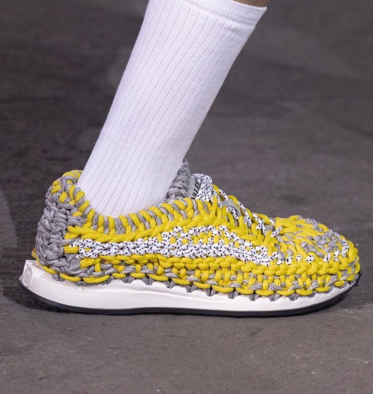 Они выполнены из плотных шнуров, а подошва вылита из легкого полимера. На изготовление одной пары вручную уходит 10 часов! Кроссовки представлены в четырех расцветках: черные, лимонные, оранжевые, бело-серые.