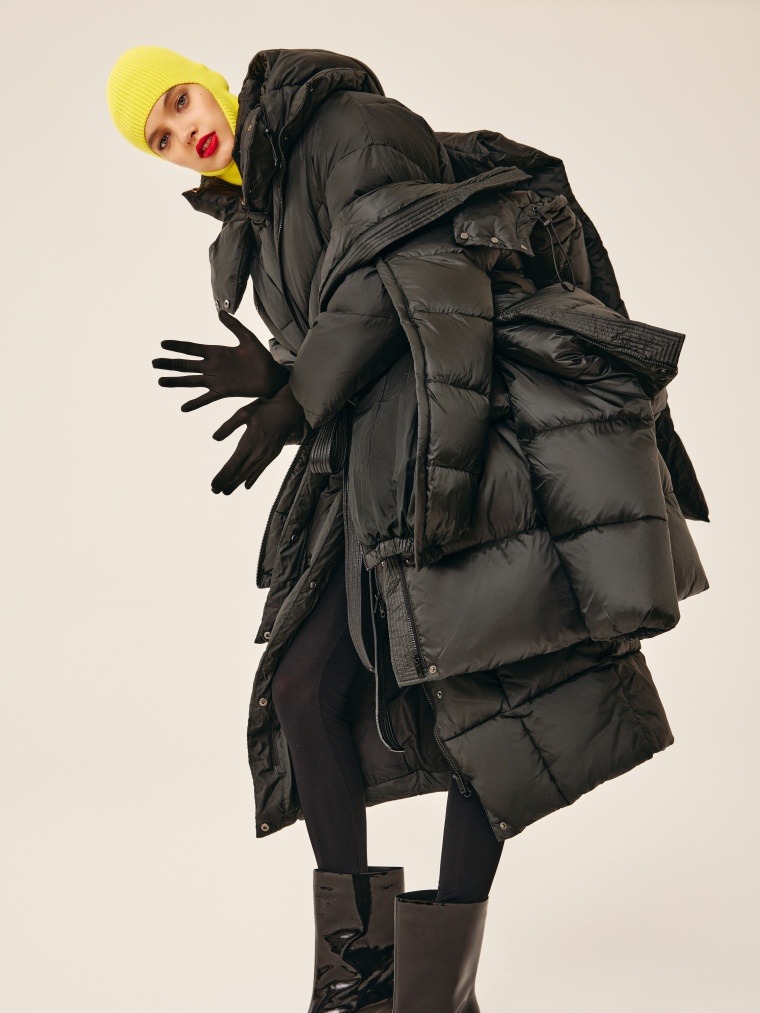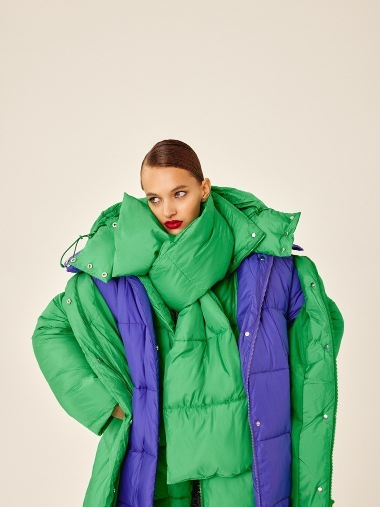 Дутые пальто, куртки-трансформеры, жилеты созданы из инновационных, переработанных материалов, соответствующие тренду на устойчивое развитие. Ткани и утеплитель – от крупнейших технологичных компаний Haili и Unifi, специализирующихся на переработке и производстве из полиэфирного recycle волокна.