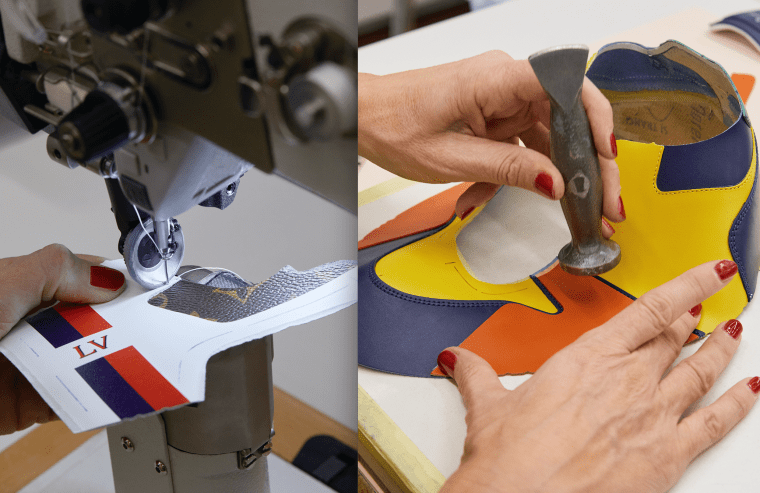 Из какого материала вы хотите видеть верх кроссовок и задник? А подошву и шнурки какого цвета? Хотите ли вы нанести на эту пару свои инициалы? Девять цветов, два вида кожи и возможность поэкспериментировать с канвой Monogram или Damier – согласитесь, процесс довольно увлекательный. Результат в сервисе можно увидеть сразу, а вот оценить воочию и примерить – через 7 недель, за это время вашу авторскую модель Run Away изготовят мастера обувной мануфактуры Louis Vuitton в итальянском городе Фиессо.