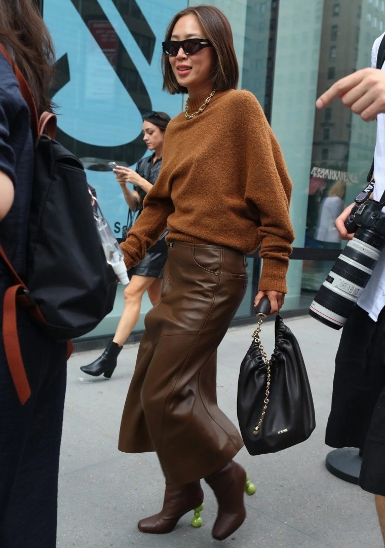 Еще одна альтернатива черному. Коричнево-шоколадный – такой же практичный и также визуально стройнит фигуру, но более теплый и комплиментарный для любого оттенка кожи.