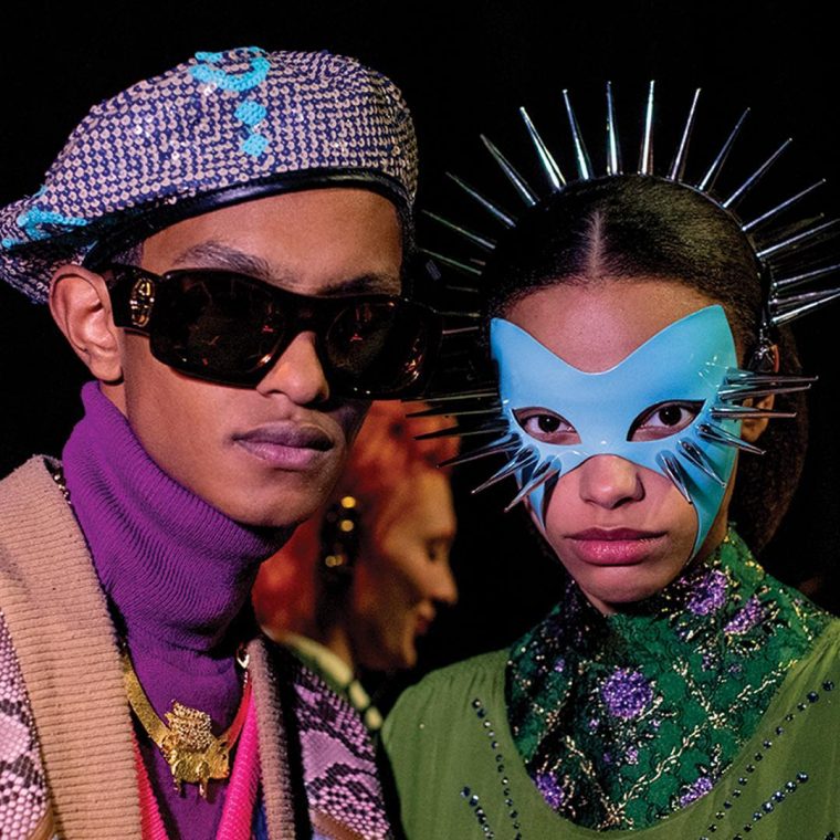 Алессандро Микеле (Gucci) сделал локацию похожей на космический корабль при помощи зеркального подиума и более 120 000 светодиодов, разослал всем приглашения – маску Гермафродита, а главным источником вдохновения назвал фолиант «Ответственность и суждение» немецко-американского философа Ханны Арендт.