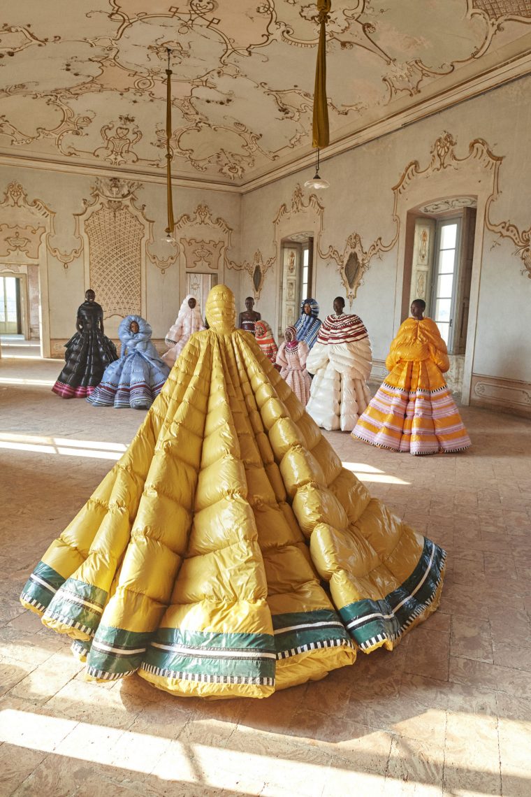 Уже второй год подряд Moncler в рамках проекта Genius сотрудничает с разными дизайнерами. В этом сезоне к Симон Роша, Пьерпаоло Пиччоли, Крейгу Грину и другим присоединились Ричард Куинн и Мэттью Уильямс. Знаменитые пуховики Moncler больше напоминали произведения искусства, а самым красивым и необычным признали творение Пьерпаоло Пиччоли (Valentino), взявшего за основу силуэт кутюрного платья, а в качестве декора – традиционные эфиопские узоры.