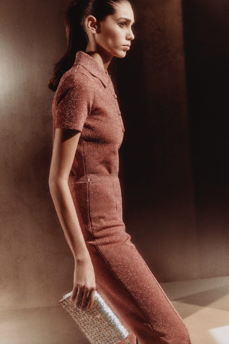 В нее вошли знаковые модели Dior – платья, юбки-пачки, поло, брюки – в цветах от синего металлик до золотистого, украшенные кристаллами, блестками и люрексом.