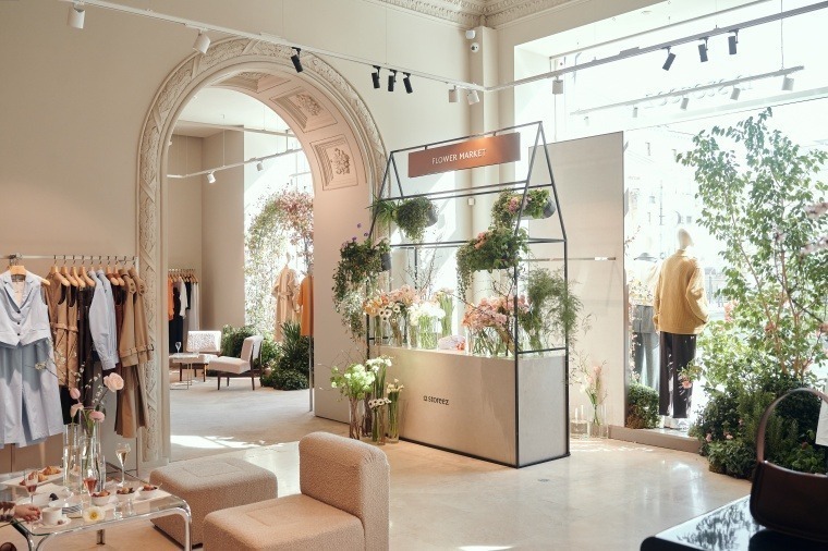 В честь новой коллекции на пляжах Довиля сняли фильм в стиле «Мужчина и женщина» Клода Лелуша, который гости посмотрели в импровизированном кинотеатре на –1 этаже. А цветочный поп-ап совместно с бутиком Lupine обеспечил девушек изысканными букетами из анемонов, калл и тюльпанов.