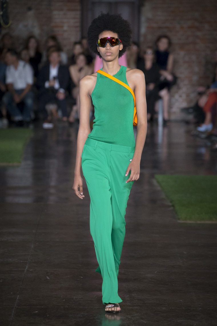 Широкие и закрывающие пол-лица, словно маска сноубордиста или альпиниста, оправы представили Stella McCartney, Loewe, Rick Owens и Marques’ Almeida. Вдохновение на морском дне черпали MSGM, Kenzo и Nicopanda, показав солнечные очки, напоминающие маску дайверов, с яркими деталями. А марки 3.1 Philipp Lim, Each x Other и Roberto Cavalli, наоборот, сосредоточились на узких оправах с изогнутыми дужками – точь-в-точь, как у велогонщиков.