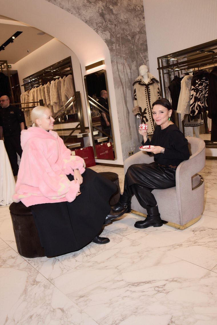 Гости наслаждались шампанским с фуагра, выбирали подарки для себя и близких, примеряли меха, среди которых были последние новинки с подиума.
