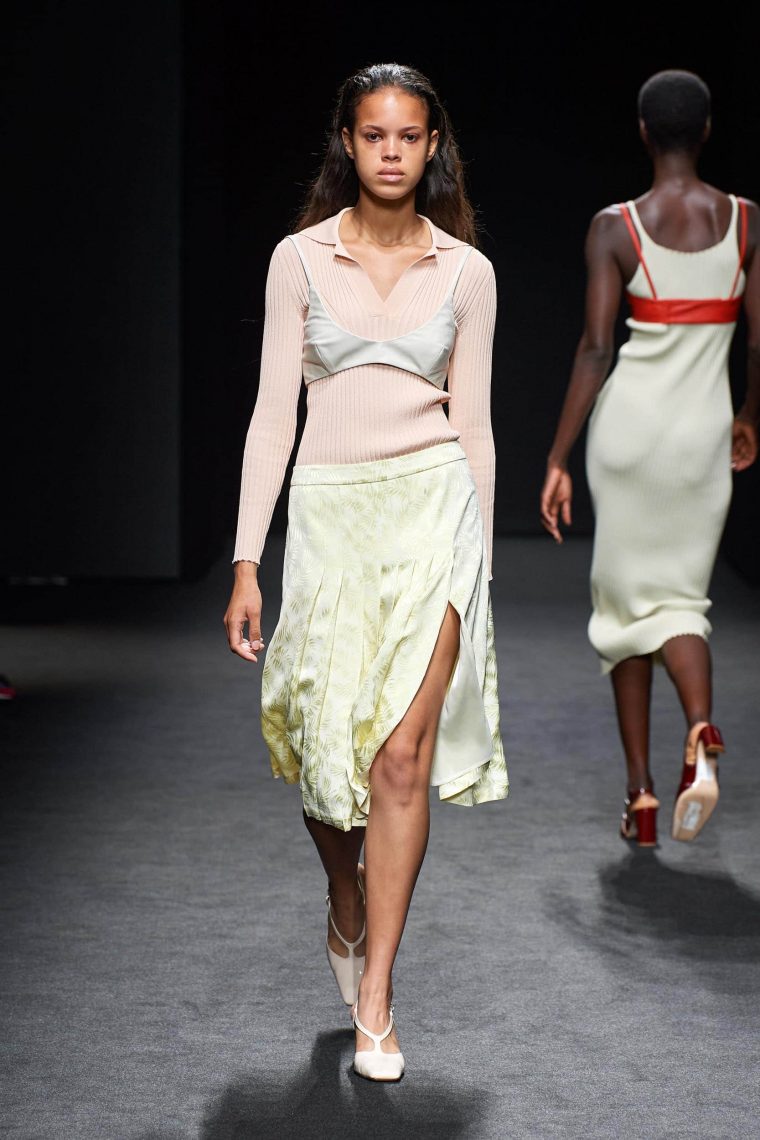 Бельевой стиль снова вернулся в модную повестку. Вслед за платьями-комбинациями дизайнеры единогласно признались в любви к микроскопическим топам, напоминающих бюстгальтер.