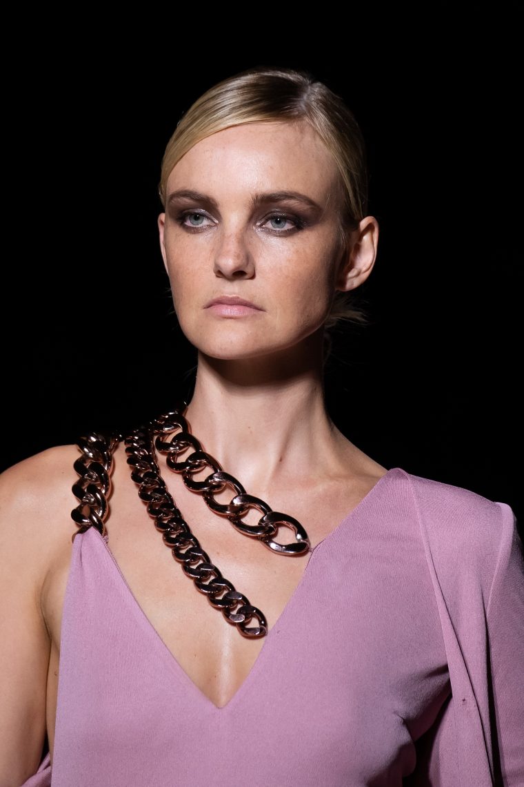 Другая грань тренда – крупные цепи как декоративный элемент. Серебристые или под золото – главное, чтобы их было видно издалека!