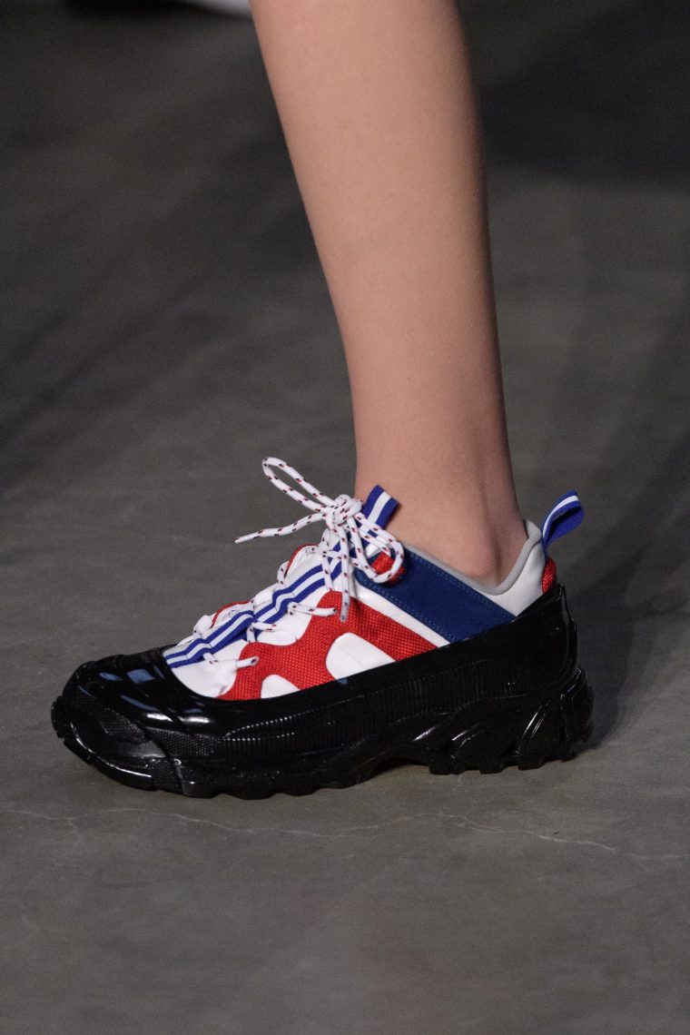 Риккардо Тиши – креативный директор Burberry – решил сделать ставку не на красоту, а на практичность. Он показал кроссовки, которые следует надевать с резиновыми галошами, – прямо как лондонские франты в XIX веке.