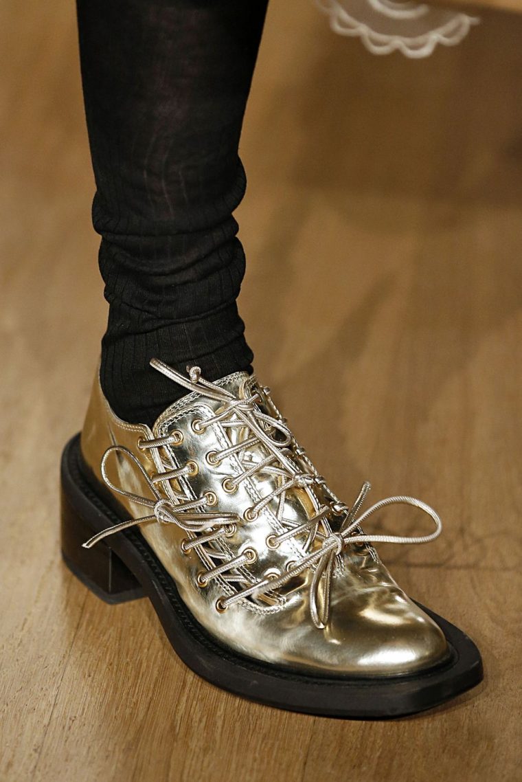 На шоу Simone Rocha модели ходили в оксфордах с тремя видами шнуровки – фэшн-пытка еще хуже корсета.