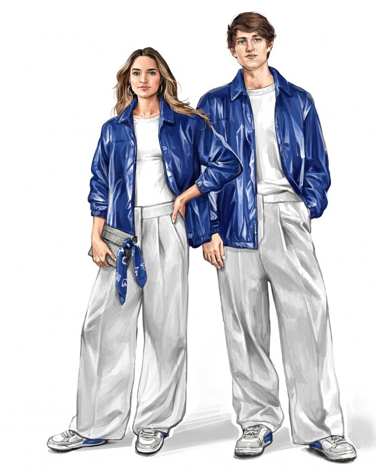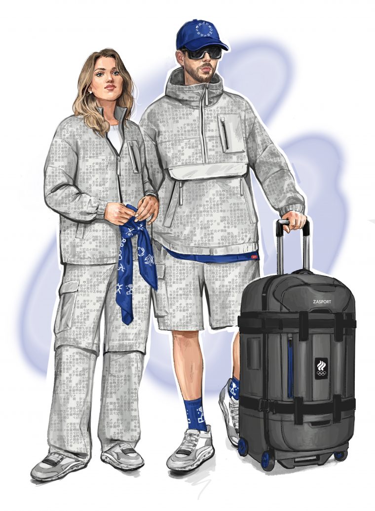 На церемонии открытия Олимпиады спортсмены должны были появиться в ярко-синих куртках с отложным воротником, серых футболках и свободных брюк.