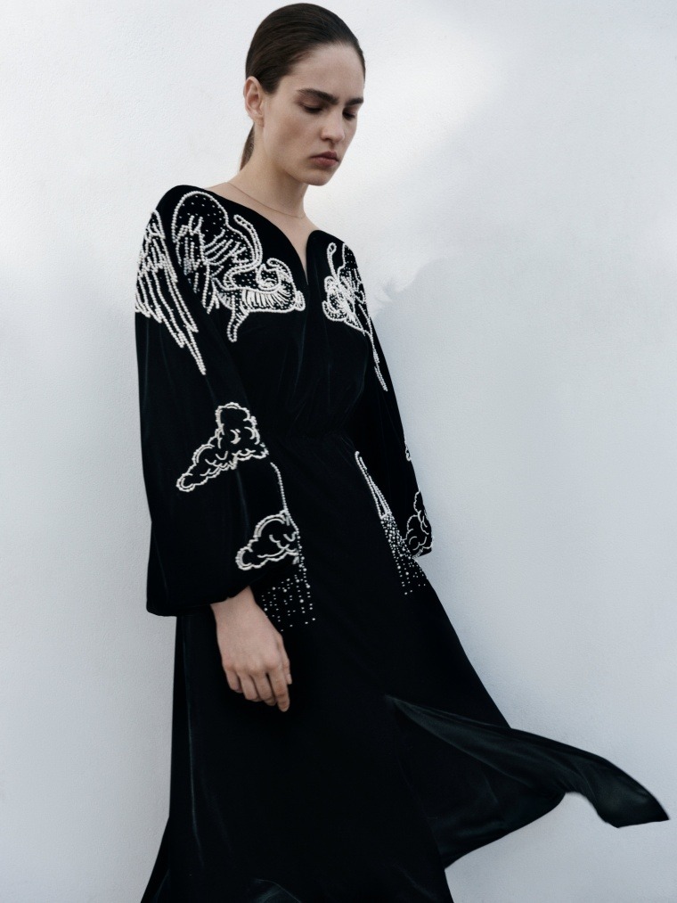 Сказочные принты и вышивки, распашные рукава и пышные юбки – с длиной мини, открытыми плечами и асимметричными силуэтами. Все вещи легко вписываются в ритм современного мегаполиса, привнося нотку волшебства.