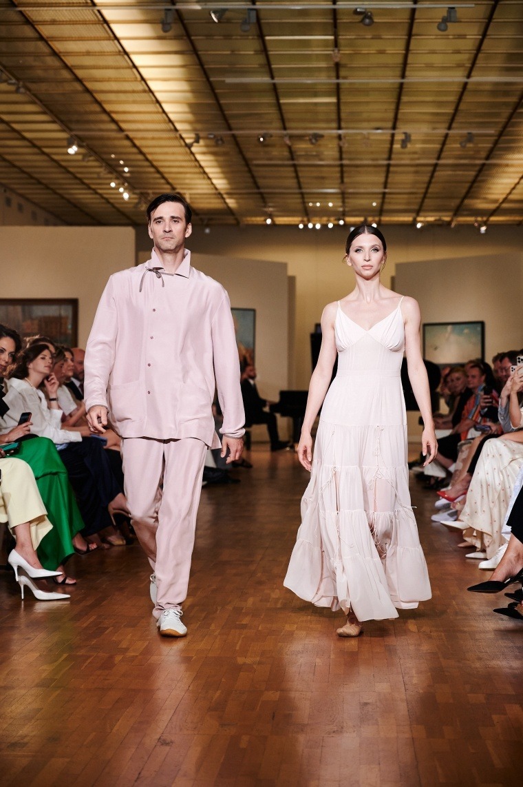 Показ открыл балетный номер солистки Большого театра Анны Тихомировой и танцовщика Руслана Скворцова под аккомпанемент Мердана Бяшимова. Победитель всероссийского конкурса молодых композиторов «Партитура» исполнил музыку собственного сочинения на концертном рояле.