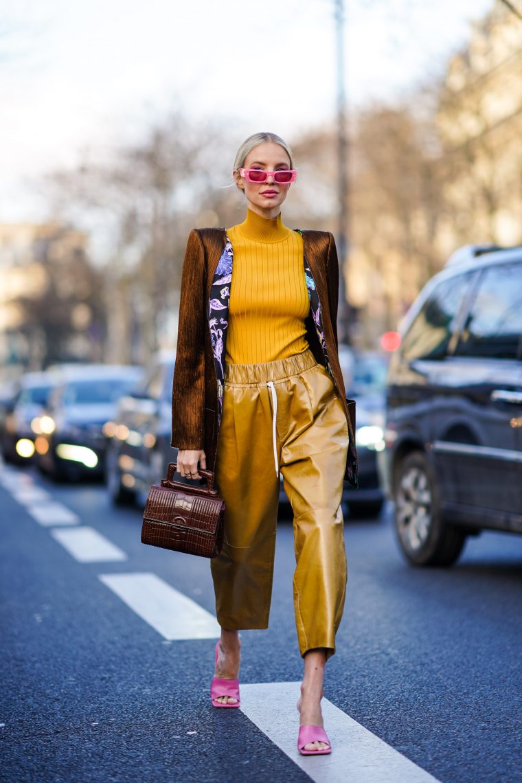 Во-вторых, оттенок куркумы идеально сочетается с другими модными тонами: ярко-розовым, хаки, бежевым и коричневым. Это доказала инфлюенсер Леонни Ханне, соединив все эти цвета в одном образе.