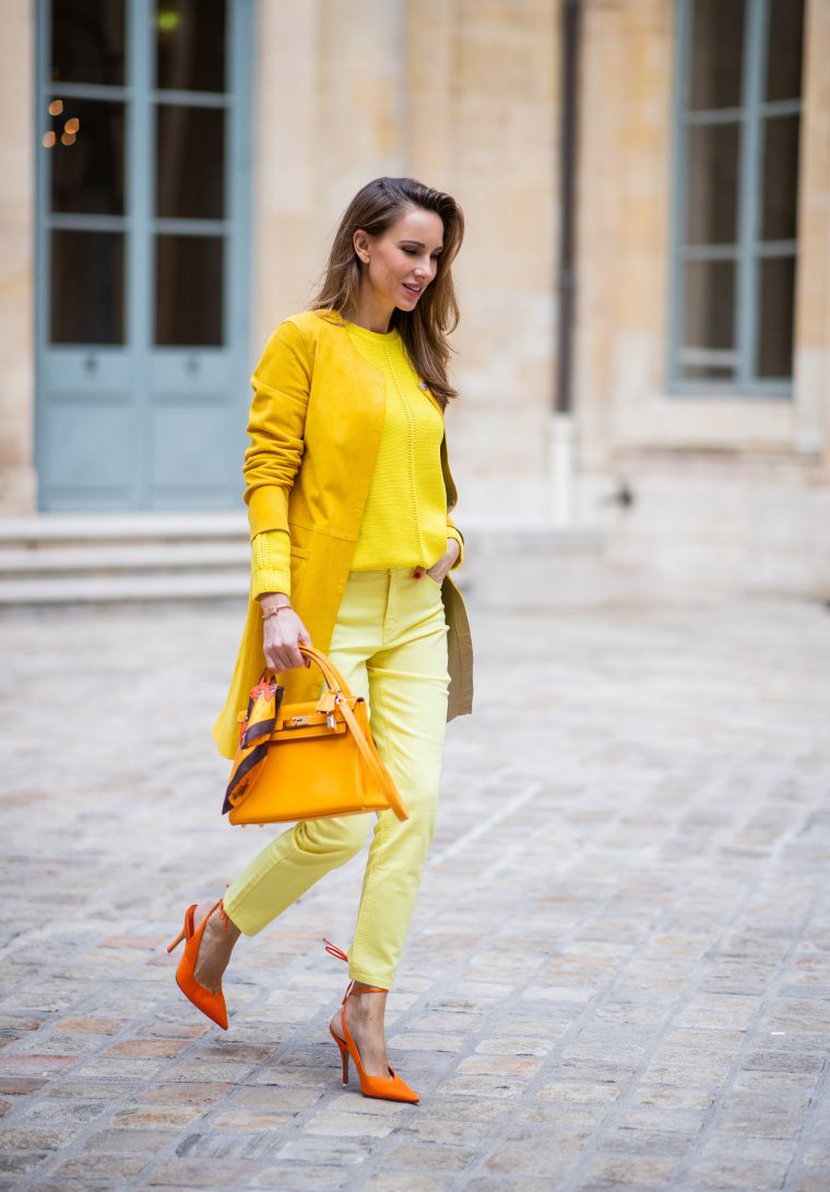 И, наконец, желто-оранжевый красиво оттеняет кожу, еще не тронутую загаром: а как только мы выйдем после карантина, это будет важный аргумент.