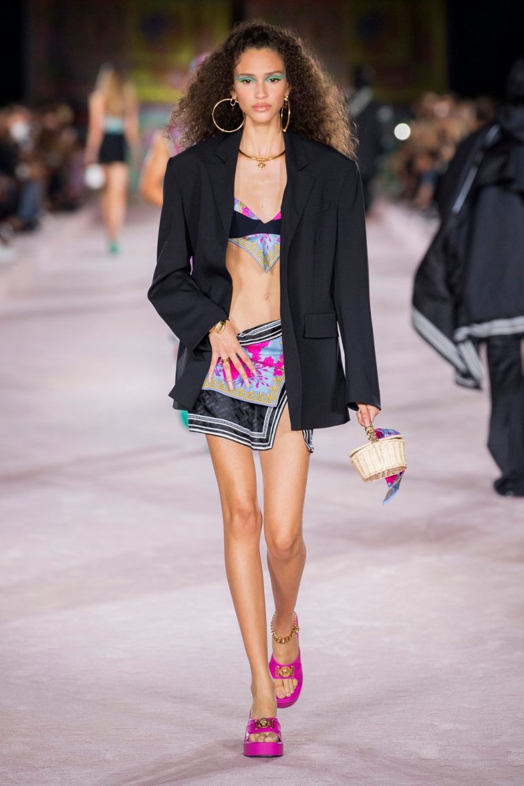 В 1980-х такой жакет-оверсайз носили с легинсами. Пару лет назад – вместо мини-платья, подчеркивая талию поясом. А сегодня самое актуальное сочетание – с кроп-топом, как на шоу Versace и Boss.