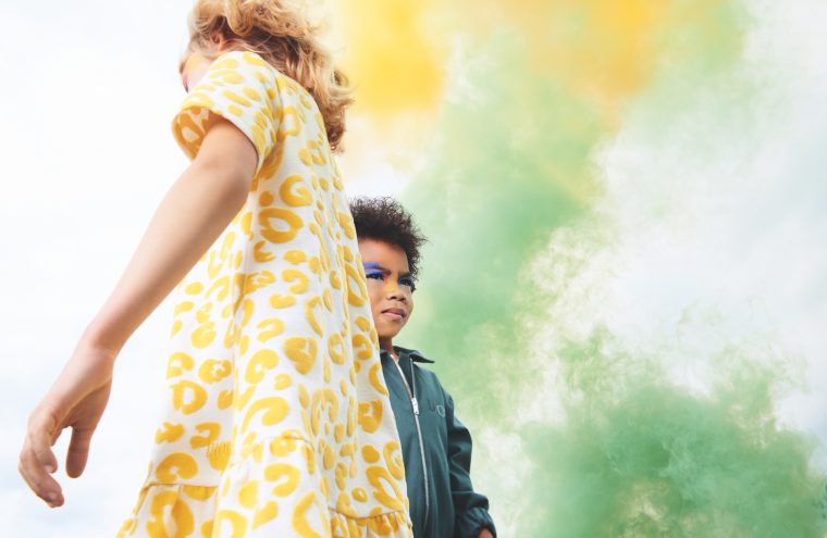В нее вошли вещи, будто нарочно испачканные красками: блузки и юбки с желто-розовыми разводами, футболки и жилеты с принтом тай-дай, комбинезоны и шорты с разноцветными мазками.