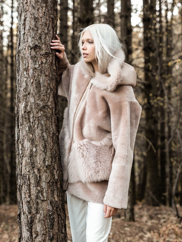 Обратите внимание на двусторонние шубы из экомеха с длинным или коротким ворсом и дубленки с вязаным эффектом, который получают в результате лазерной обработки.