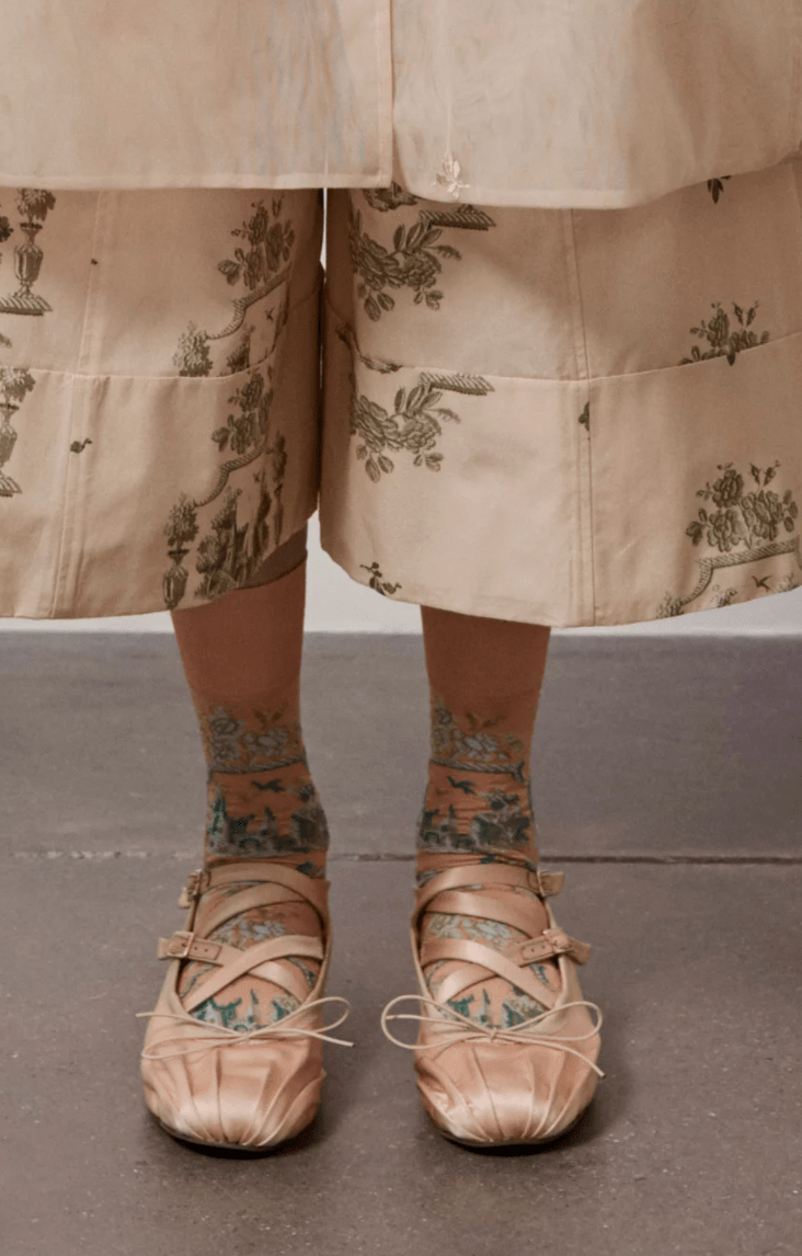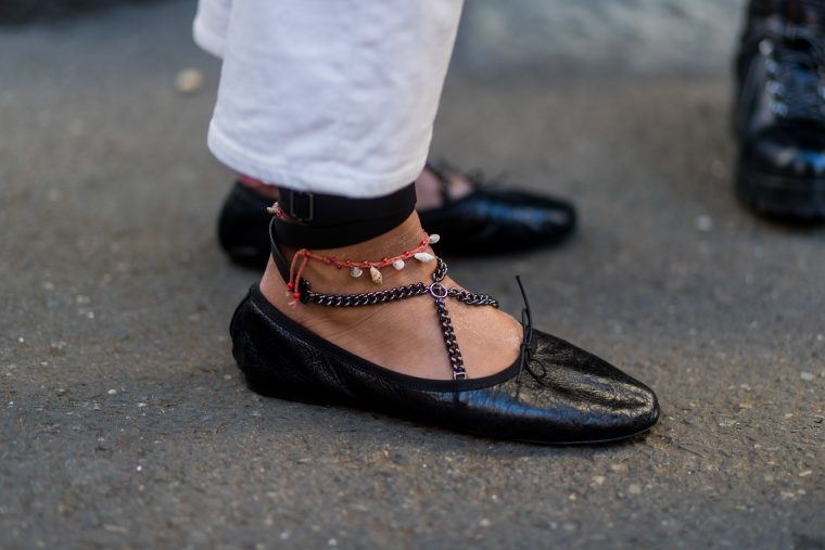 Если классические черные кажутся скучными, присмотритесь к более ярким, например алым, как у Celine, или золотым с ремешком, как у пуантов, вроде тех, что сделала Simone Rocha.