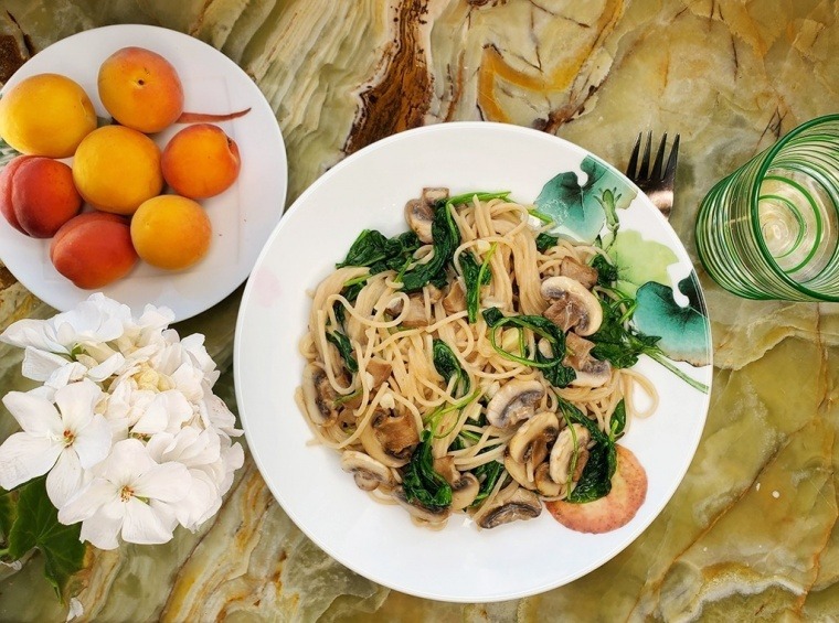 Паста с грибами и шпинатом