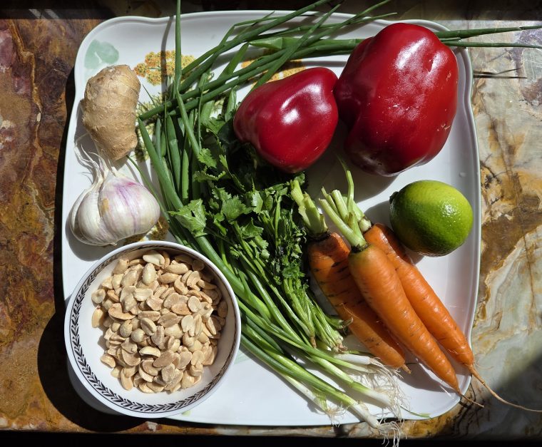 - Мелко нарежьте лук и петрушку. Измельчите чеснок и имбирь. Петрушку отложите.