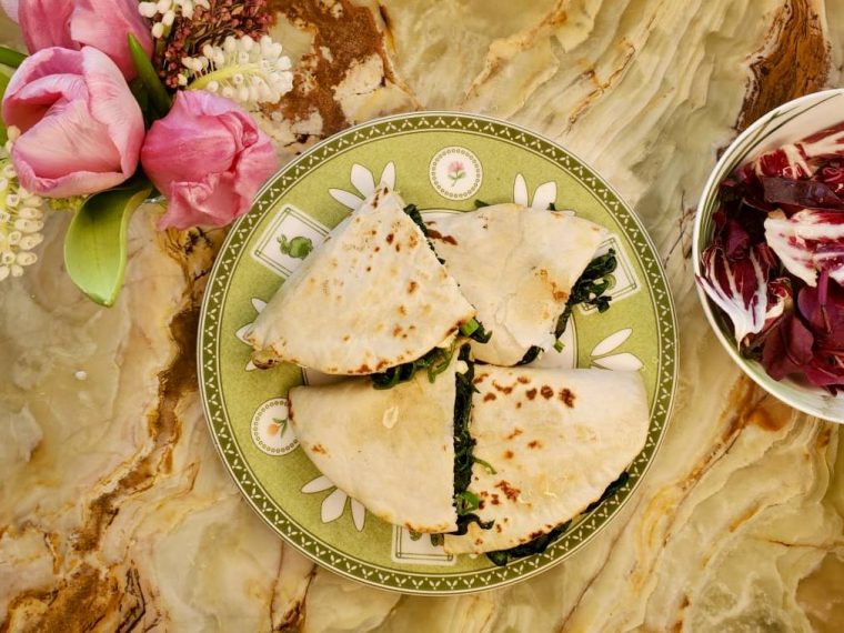 Обычно спанакопита готовится из слоеного теста с начинкой из зелени и сыра фета. Но начинкой можно заполнить питы или лепешки – получится вкусное блюдо на скорую руку.