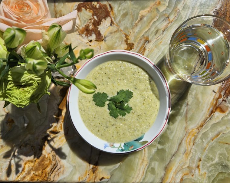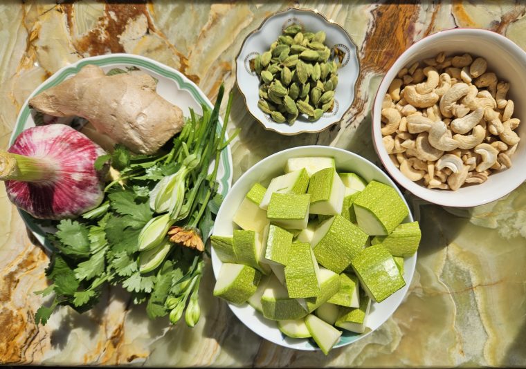 Подробности расскажу позже, а пока поделюсь рецептом супа-пюре из кабачков, которым угощали на дегустации. Этот суп врачи аюрведы рекомендуют на летний обед – он теплый, но дает ощущение прохлады и свежести, балансирует все доши.