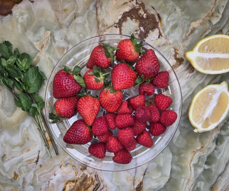 Для праздничного настроения вам понадобятся красные ягоды – малина или клубника. Они хороши и вместе, и по отдельности.