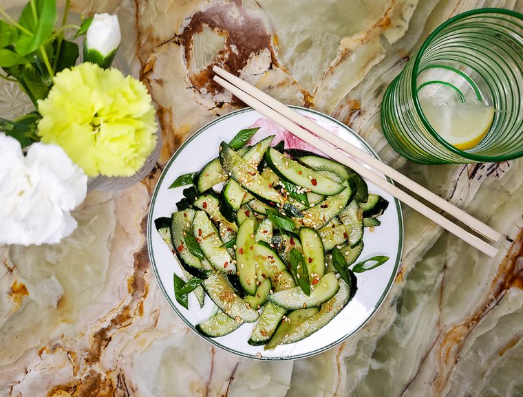 Если вы запросто можете съесть килограмм луховицких огурцов с солью, то вам точно пригодится этот рецепт пикантного освежающего салата. По вкусу напоминает наши малосольные огурцы, но с восточным колоритом – и прекрасно справится с ролью закуски или гарнира к мясному или овощному блюду.