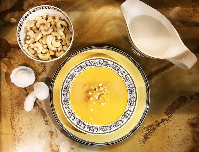 - Используя ручной блендер, смешайте суп до желаемой консистенции, но не однородной массы. Добавьте лимонную цедру и сок, посолите. При подаче украсьте долькой лимона, свежей мятой или кинзой.