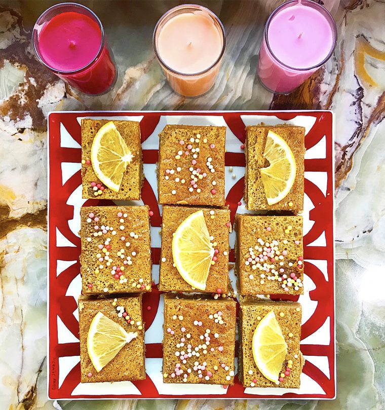 - Выньте пирог из духовки, дайте ему остыть и поставьте на несколько часов в холодильник. Перед подачей нарежьте на квадратики, украсьте сахарной пудрой, ломтиками лимона или по вашему вкусу.