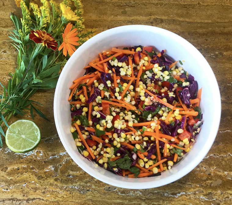 Помимо кукурузы в традиционном мексиканском салате много других овощей – желтые, красные, оранжевые, зеленые фиолетовые – настоящая радуга! А ведь известно, что чем больше вы едите овощей и фруктов разных цветов, тем лучше для здоровья.