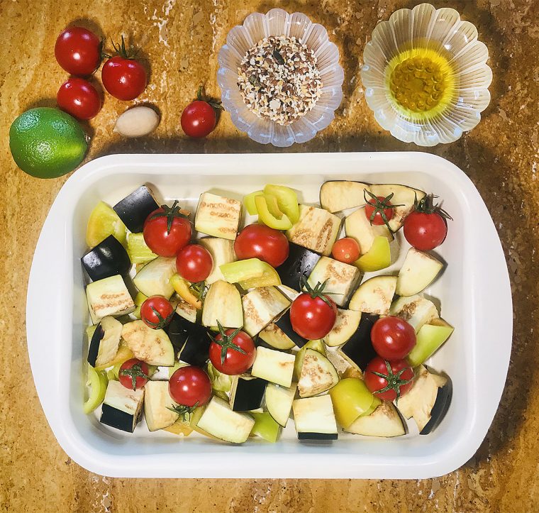 Я режу для быстроты кубиками, запекаю в духовке, так полезные свойства овощей сохраняются дольше. А овощи беру те, которые выросли на даче в огороде, или те, что понравились на рынке – самые свежие.