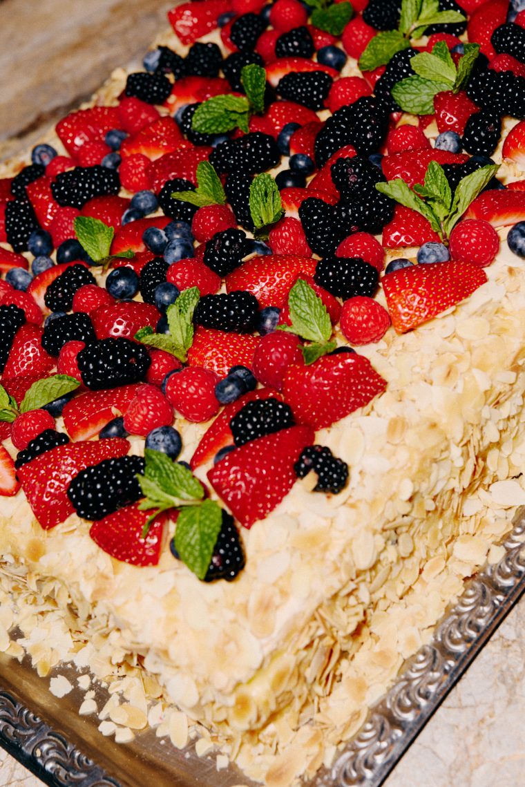 На десерт гости попробовали знаменитый баскский чизкейк по рецепту из Сан-Себастьяна, торт из меренги с черносливом и ягодами (на фото) и домашнее мороженое.