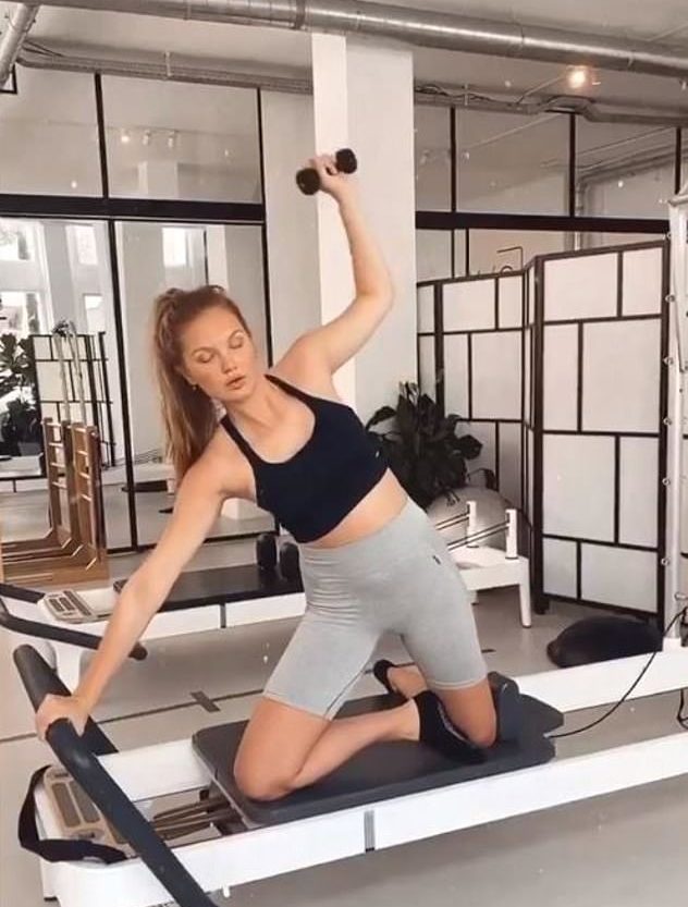 Вот и сейчас тренировки будущей мамы – низкоинтенсивные. «Сегодня я в основном занимаюсь пилатесом на реформере, – говорит Роми. – Я знаю, что точно не получу никаких травм, а эффективность от занятий – максимальная. Чтобы немного усложнить упражнения, иногда беру в руки небольшие гантели».