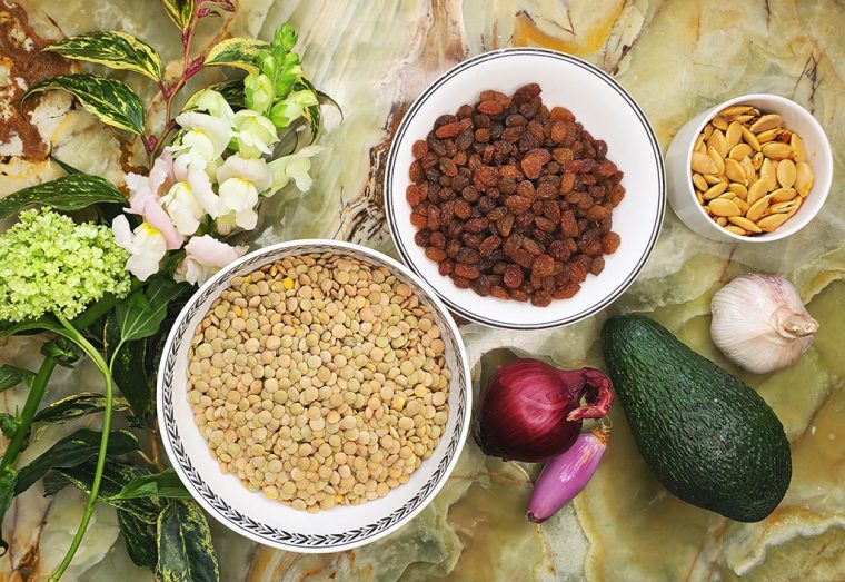 - Нарежьте базилик и фету, положите в кастрюлю, добавьте изюм. Хорошо перемешайте и снимите с огня. Подавайте чечевицу с коричневым рисом или молодым шпинатом. Сверху выложите ломтики свежего авокадо или оливки, посыпьте фетой.
