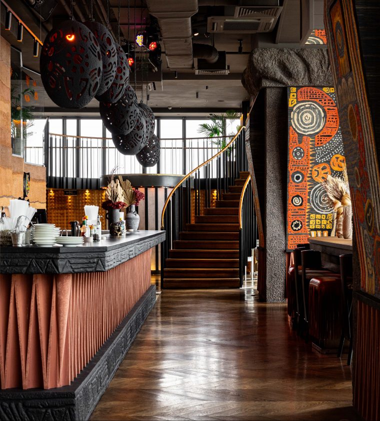 Для интерьера Jamaa характерны ремесленная энергетика и рукотворность: натуральные материалы, этнические детали, мягкое освещение.