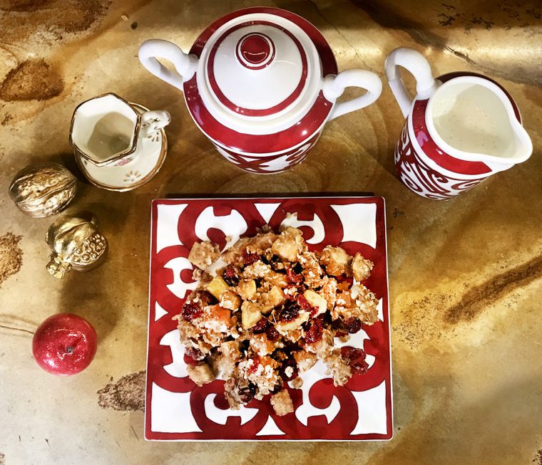 Но если взять для такого пирога яблоки и добавить к ним сухофрукты, то получится настоящее зимнее рождественское блюдо – десерт или воскресный завтрак. В нашем рецепте крисп – яблочно-клюквенный. Сушеная клюква придает выпечке приятную сладость, но можно использовать и другие сухофрукты – чернослив, курагу, вишню или клубнику.