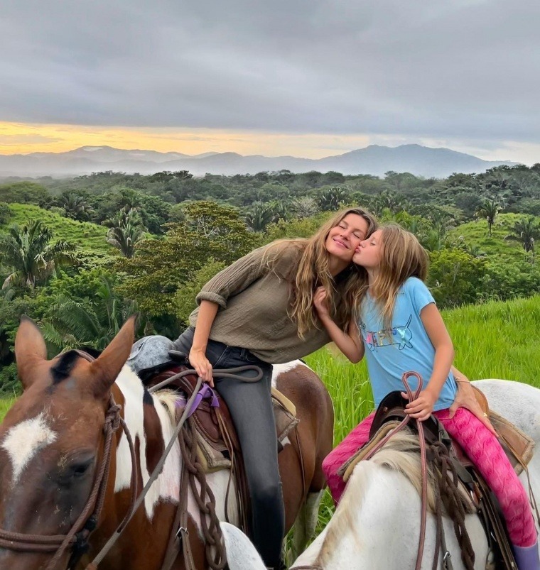 «Вместе с детьми и мужем мы и правда постоянно в движении и ищем альтернативные виды спорта: хайкинг, езда на лошадях, прогулки на природе и многое другое», – говорит Жизель.