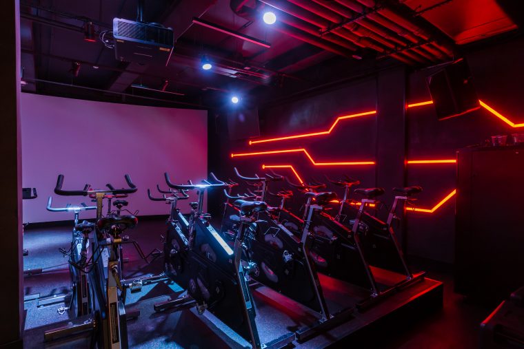 По последнему слову техники оборудована и студия сайкла. Она работает по программам The TRIP и RPM новозеландского института фитнеса Les Mills. Занятия проходят в формате полного погружения в фантастические путешествия за счет широкоформатного экрана Immersive и объемного звука.