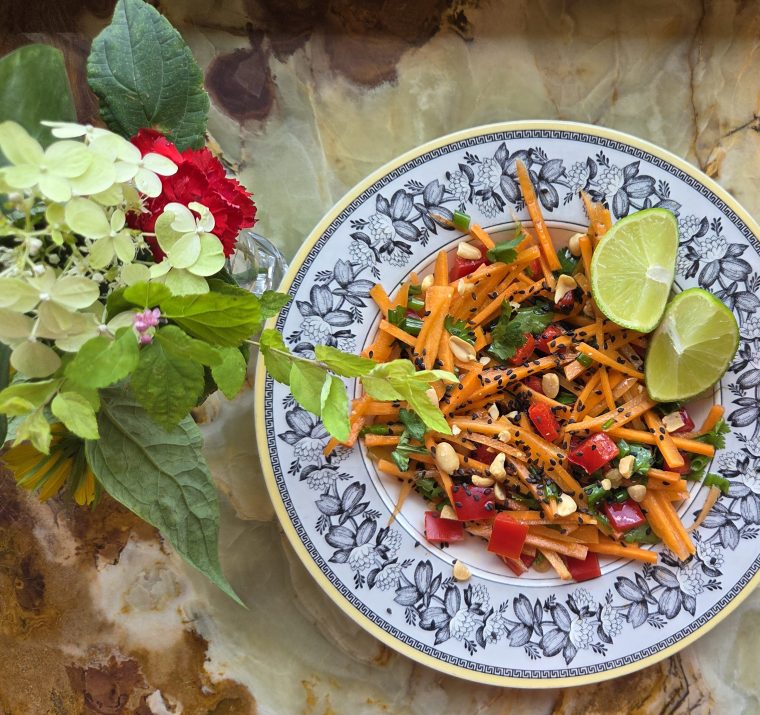 С детства любимый салат из морковки звучит по-новому благодаря заправке в азиатском стиле с идеальным балансом сладкого, кислого, соленого и острого на основе имбиря, кунжутного масла и соевого соуса.